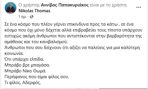 ΚοινωνικάΤοπική Αυτ/κηση ΒΕΛΟ-ΒΟΧΑ: Α. Παπακυριάκος: “Περήφανος που είμαι φίλος σου” 29 Ιανουαρίου, 2026 FacebookTwitterPinterestWhatsApp Η ανάρτηση από τον π. δήμαρχο Βέλου-Βόχας Α. Παπακυριάκο: