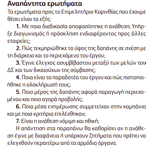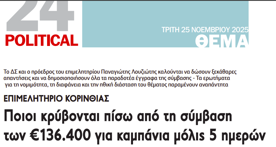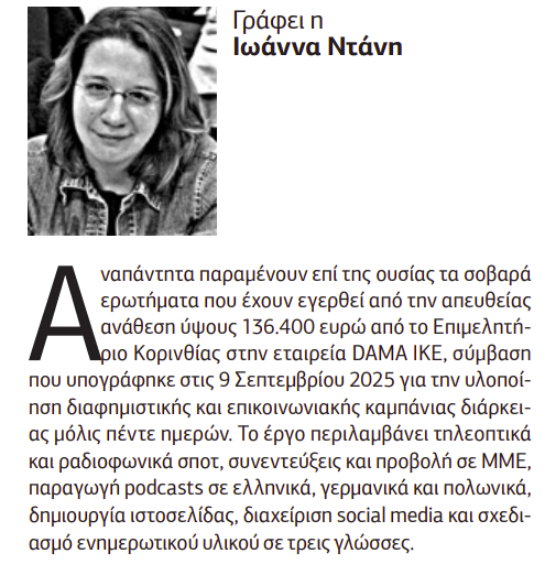 Βουίζει η Κορινθία στο εξής ερώτημα των ΜΜΕ: ΠΟΙΟΙ κρύβονται πίσω από τη σύμβαση των 136.400 ευρώ για καμπάνια μόλις 5 ημερών;