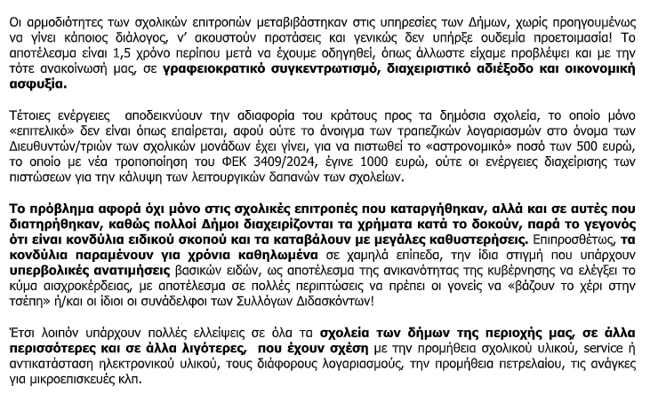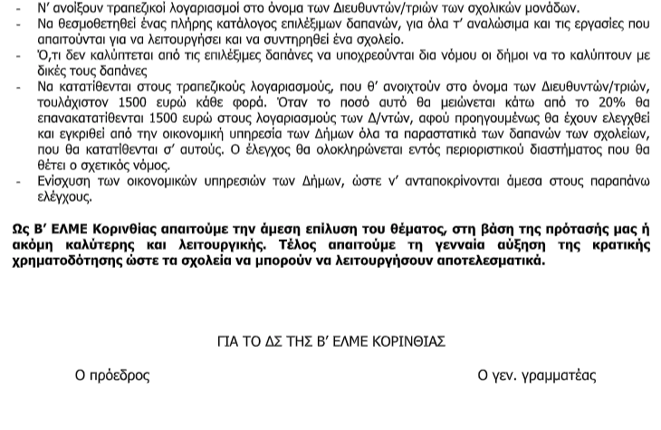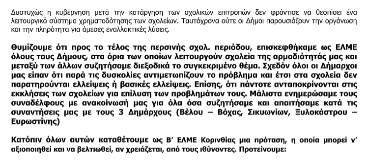 Β’ ΕΛΜΕ Κορινθίας: “Απαιτούμε την άμεση επίλυση του θέματος -Δυστυχώς η κυβέρνηση μετά την κατάργηση των σχολικών επιτροπών δεν φρόντισε να…”