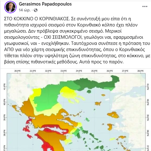 Γ. Παπαδόπουλος: “Στο κόκκινο ο Κορινθιακός! -Η πιθανότητα ισχυρού σεισμού στον Κορινθιακό κόλπο έχει πλέον…”