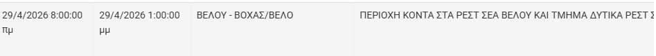 Από τον ΔΕΔΔΗΕ Κορίνθου αναφέρεται: «Λόγω εργασιών συντήρησης του Δικτύου του ΔΕΔΔΗΕ θα πραγματοποιηθεί διακοπή ηλεκτροδότησης στην παρακάτω περιοχή: