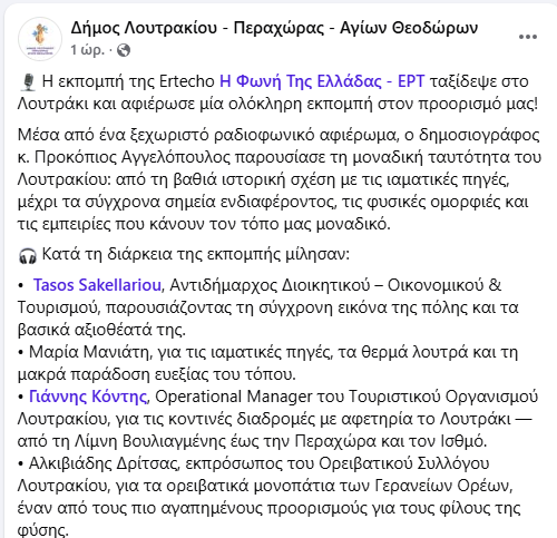 Η ανάρτηση από το δήμο Λουτρακίου-Π-ΑΓ.Θ: