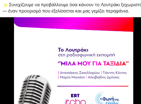 Η εκπομπή της Ertecho Η Φωνή Της Ελλάδας – ΕΡΤ ταξίδεψε στο Λουτράκι -“Συνεχίζουμε να προβάλλουμε όσα κάνουν το Λουτράκι ξεχωριστό”