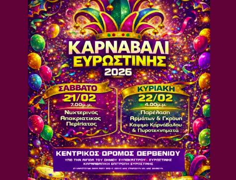 Κοινωνικά Καρναβάλι Ευρωστίνης -Το πρόγραμμα 10 Φεβρουαρίου, 2026 FacebookTwitterPinterestWhatsApp Η ανακοίνωση: