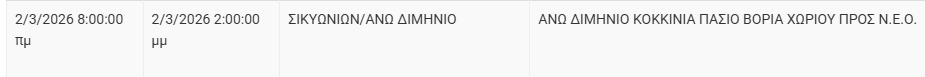 Από τον ΔΕΔΔΗΕ Κορίνθου αναφέρεται: «Λόγω εργασιών συντήρησης του Δικτύου του ΔΕΔΔΗΕ θα πραγματοποιηθεί διακοπή ηλεκτροδότησης στην παρακάτω περιοχή: