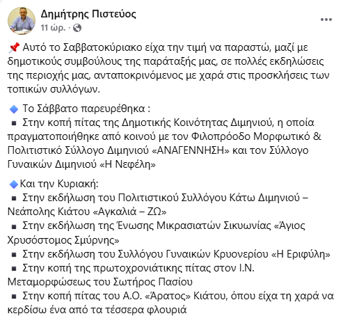 Η ανάρτηση από τον αρχηγό της αντιπολίτευσης στο δήμο Σικυωνίων Δ. Πιστεύο: