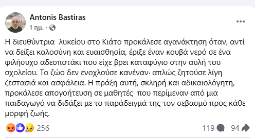 Η παρακάτω ανάρτηση στο facebook έχει πάρει μεγάλη έκταση στο Κιάτο καθώς γίνεται αναφορά για τον τρόπο αντίδρασης εκπαιδευτικού σε αδέσποτο!