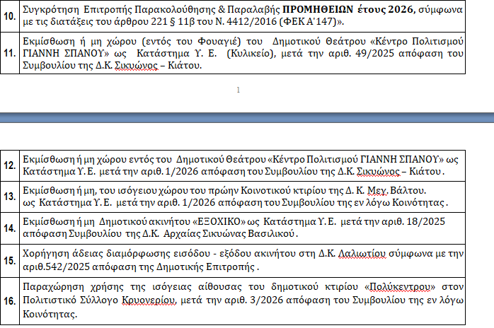 ΚΙΑΤΟ: Τα 16 θέματα που θα απασχολήσουν τη συνεδρίαση του δημοτικού συβουλίου