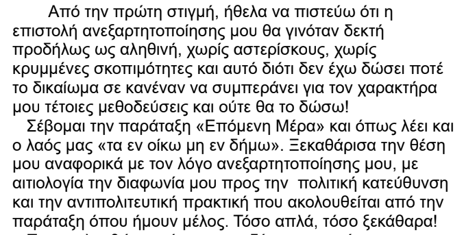Η ανακοίνωση του Δημήτρη Ψυχογυιού μετά την ανεξαρτητοποίησή του: