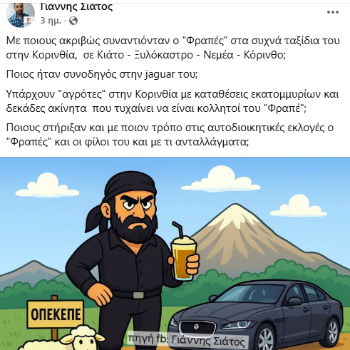 ΑγροτικάΚοινωνικάΠαρασκήνιοΠΡΩΤΟΣΕΛΙΔΑΣημαντικές ΕιδήσειςΤοπική Αυτ/κηση ΚΟΡΙΝΘΙΑ: Με ποιους συναντιόνταν ο “Φραπές” στα συχνά ταξίδια του σε Κιάτο, Ξυλόκαστρο, Νεμέα και Κόρινθο; 27 Οκτωβρίου, 2025 FacebookTwitterPinterestWhatsApp Με ποιους συναντιόνταν ο “Φραπές” στα συχνά ταξίδια του σε Κιάτο, Ξυλόκαστρο, Νεμέα και Κόρινθο; Η ανάρτηση του περιφερειακού συμβούλου Ι. Σιάτου ΣΣ. Ειδικά για την περιοχή του Κιάτου είναι αλήθεια ότι ακούγονται συγκεκριμένα ονόματα… Κ.Ν