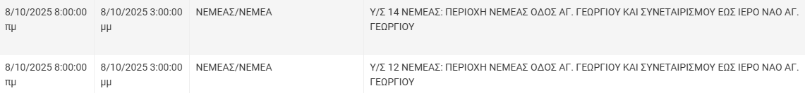 Από τον ΔΕΔΔΗΕ Κορίνθου αναφέρεται: «Λόγω εργασιών συντήρησης του Δικτύου του ΔΕΔΔΗΕ θα πραγματοποιηθεί διακοπή ηλεκτροδότησης στις παρακάτω περιοχές: