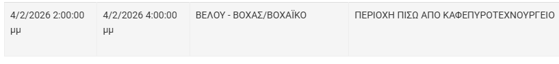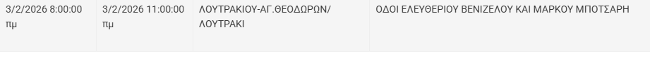 Από τον ΔΕΔΔΗΕ Κορίνθου αναφέρεται: «Λόγω εργασιών συντήρησης του Δικτύου του ΔΕΔΔΗΕ θα πραγματοποιηθεί διακοπή ηλεκτροδότησης στις παρακάτω περιοχές: