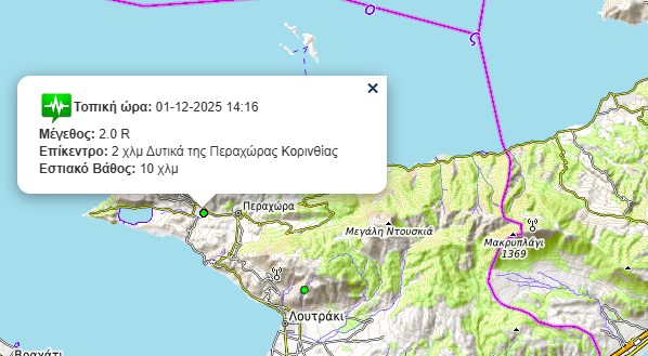 Κοινωνικά ΚΟΡΙΝΘΙΑ: Σεισμική δόνηση κοντά στην Περαχώρα (φωτο) 2 Δεκεμβρίου, 2025 FacebookTwitterPinterestWhatsApp Ασθενής σεισμική δόνηση 2,0 Ρίχτερ σημειώθηκε τη Δευτέρα το απόγευμα κοντά στην Περαχώρα Κορινθίας Το επίκεντρο του σεισμού: Κ.Ν