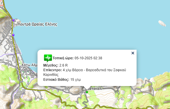 Κοινωνικά ΚΟΡΙΝΘΙΑ: Σεισμική δόνηση κοντά στο Σοφικό -Δείτε το επίκεντρο… 6 Οκτωβρίου, 2025 FacebookTwitterPinterestWhatsApp Σεισμική δόνηση 2,6 Ρίχτερ σημειώθηκε την Κυριακή τα ξημερώματα κοντά στο Σοφικό με εστιακό βάθος 15 χιλιομέτρων! Το επίκεντρο του σεισμού: Κ.Ν