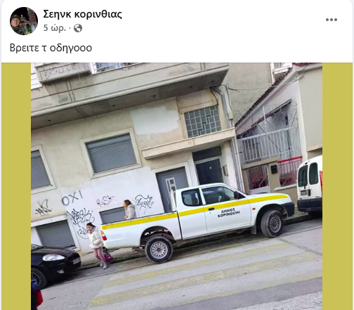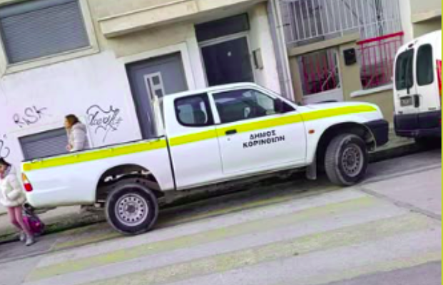 “Βλέπουμε όχημα του δήμου Κορινθίων να είναι σταθμευμένο ακριβώς πάνω σε διάβαση και να την κλείνει από τη μία πλευρά ως την άλλη!
