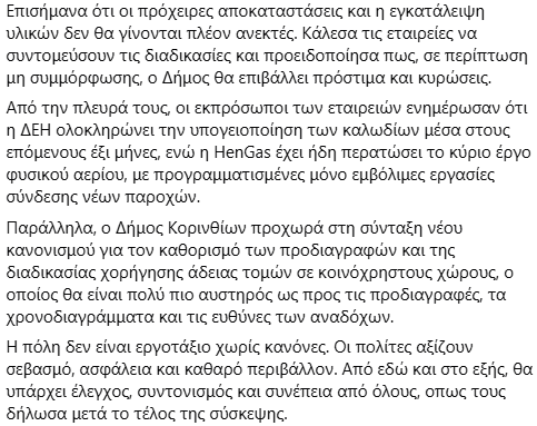 Πριν από 2 ώρες λάβαμε την εξής ανακοίνωση από το δήμο Κορινθίων: