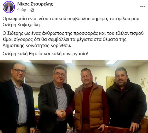 Η ανάρτηση του δημάρχου Κορινθίων Ν. Σταυρέλη: