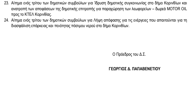 Ενδιαφέρον αποκτά το 23ο θέμα της ημερήσιας διάταξης στο δημοτικό συμβούλιο του δήμου Κορινθίων που θα γίνει σήμερα και αφορά το αίτημα δημοτικών συμβούλων για ίδρυση δημοτικής συγκοινωνίας και ανατροπή των αποφάσεων για παραχώρηση των λεωφορείων – δωρεά MOTOR OIL προς το ΚΤΕΛ Κορινθίας!