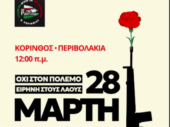 Κοινωνικά ΚΟΡΙΝΘΟΣ: Όχι στον πόλεμο -Καμία εμπλοκή της Ελλάδας -Συνάντηση στα Περιβολάκια 24 Μαρτίου, 2026 FacebookTwitterPinterestWhatsApp Η ανακοίνωση: