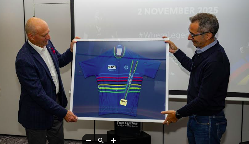 Η συνέντευξη τύπου ολοκληρώθηκε με την παρουσίαση της φανέλας και του μεταλλίου του UCIGranFondoLoutraki 2025, που συμβολίζουν την ταυτότητα και την αξία αυτής της μεγάλης ποδηλατικής γιορτής.