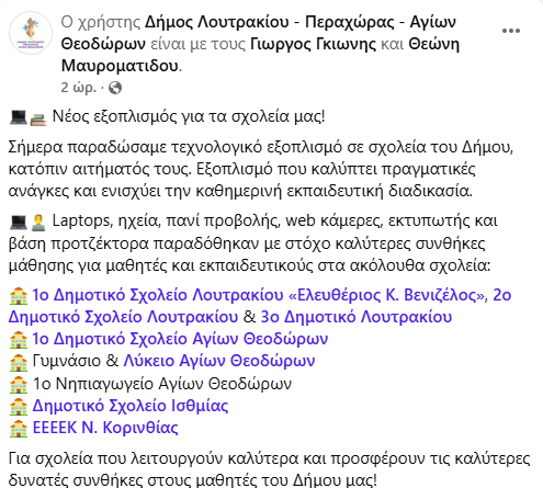 ΚοινωνικάΤοπική Αυτ/κηση ΛΟΥΤΡΑΚΙ -Π-ΑΓ.Θ: Σε ποια σχολεία παραδόθηκαν laptops, ηχεία, πανί προβολής, web κάμερες, εκτυπωτής και βάση προτζέκτορα… 14 Ιανουαρίου, 2026 FacebookTwitterPinterestWhatsApp Η ανάρτηση από το δήμο Λουτρακίου-Π-ΑΓ.Θ: