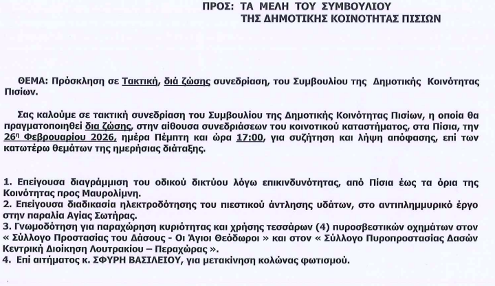 Η πρόσκληση στους τοπικούς συμβούλους:
