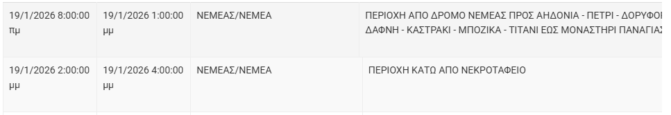 ΝΕΜΕΑ: Οι διακοπές ρεύματος που θα γίνουν τη Δευτέρα