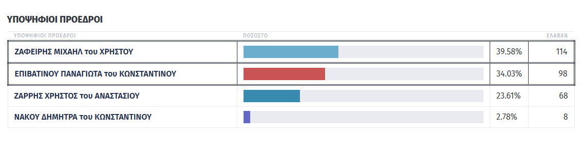 Νικητής στον πρώτο γύρο ο Μιχάλης Ζαφείρης και δεύτερη η Επιβατινού!!! Την ερχόμενη Κυριακή ο δεύτερος γύρος των εκλογών όπου και θα προκύψει ο νέος πρόεδρος