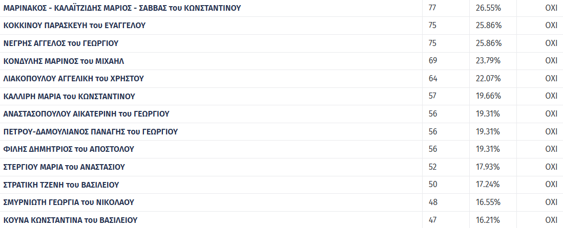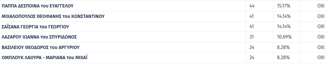 Αναλυτικά τα αποτελέσματα των εκλογών: