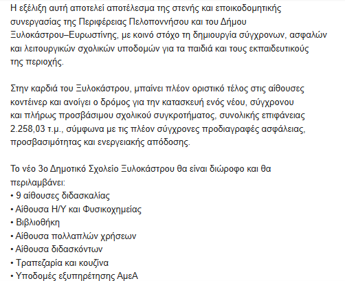 ΚοινωνικάΣημαντικές ΕιδήσειςΤοπική Αυτ/κηση ΞΥΛΟΚΑΣΤΡΟ: Β. Τσιώτος: “Ένα πάγιο αίτημα πολλών ετών μπαίνει επιτέλους σε τροχιά υλοποίησης -Το νέο κτιριακό συγκρότημα για το 3ο Δημοτικό και το 3ο Νηπιαγωγείο δεν είναι απλώς ένα ακόμη έργο υποδομής…” 24 Μαρτίου, 2026 FacebookTwitterPinterestWhatsApp Σε ανακοίνωση από το δήμο Ξυλοκάστρου- Ευρωστίνης μεταξύ άλλων αναφέρεται: