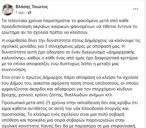 Η ανάρτηση του δημάρχου Ξυλοκάστρου- Ευρωστίνης Β. Τσιώτου που αξίζει να διαβάσει κάποιος προσεχτικά: