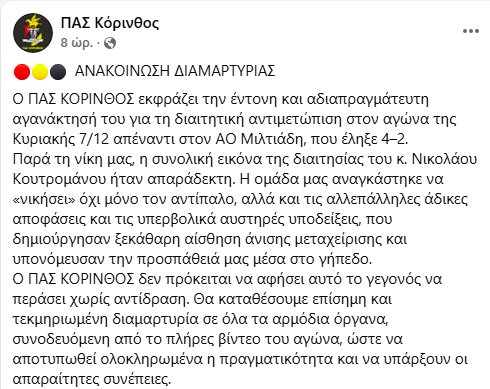 ΑθλητικάΚοινωνικά Ο ΠΑΣ Κόρινθος δεν νίκησε μόνο τον αντίπαλο αλλά και τις… 8 Δεκεμβρίου, 2025 FacebookTwitterPinterestWhatsApp Η ανακοίνωση από τον ΠΑΣ Κόρινθος: