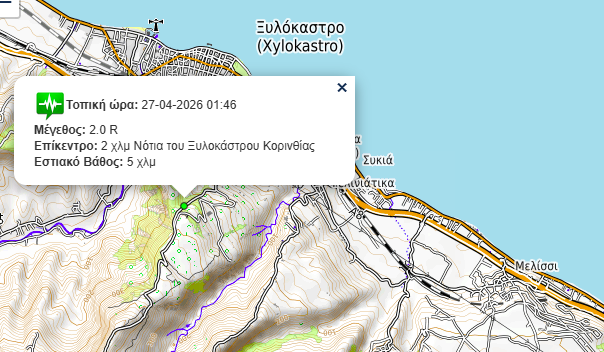 Σεισμική δόνηση σε απόσταση 2 χιλιομέτρων από το Ξυλόκαστρο (φωτο)