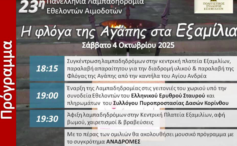 Κοινωνικά Συγκέντρωση λαμπαδηδρόμων στην κεντρική πλατεία Εξαμιλίων! -Το πρόγραμμα… 2 Οκτωβρίου, 2025 FacebookTwitterPinterestWhatsApp Το πρόγραμμα: