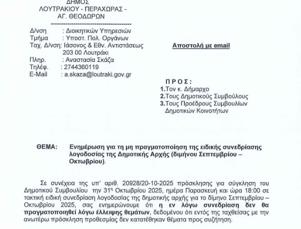 Η ανακοίνωση από το δήμο στους δημοτικούς συμβούλους: